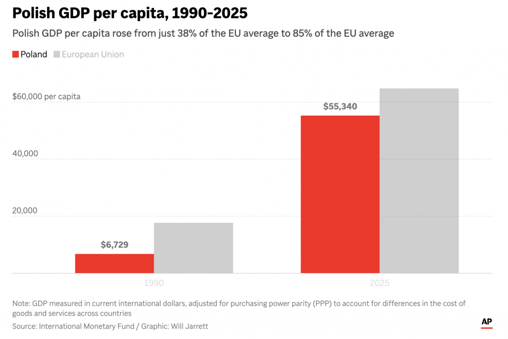 Earlier this week I read an Associated Press (AP) article about Poland’s economic growth since the end of Communism in the former Soviet-bloc state. Generally speaking, things are good in Eastern Europe, though a revanchist Russia to Poland’s east rekindles memories of an earlier era and the disaster after the Molotov–Ribbentrop Pact.